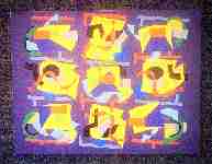 The style here is one of flat color and overlapping planes, as in the paintings of Stuart Davis... but the variations of motif are very different from Davis's approach.