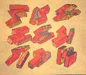 These are similiar to the last set of variations, being sketches for large wall pieces. The fact that the boxy shapes came to resemble the letters SI or IS, both of which have meaningful associations, is a happy accident.