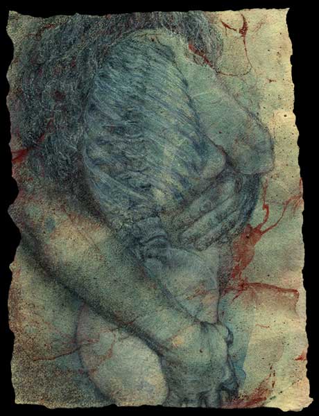 2. Profile couple with visible skeleton, blue-red version